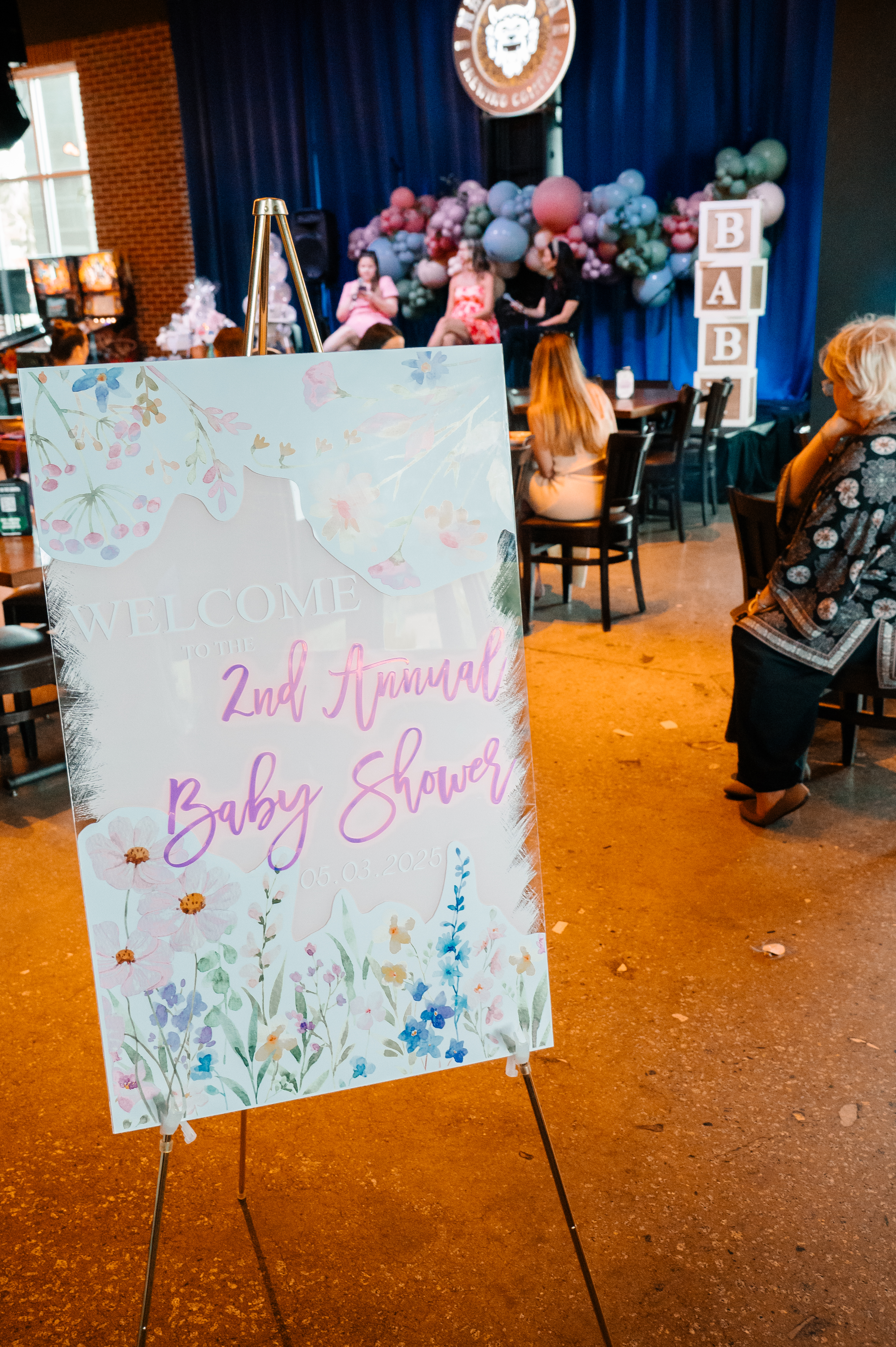 This gorgeous balloon work was donated by another one of our Event Sponsors: Holy City Party. Not only did she provide these beautiful balloons, she also showcased her Personalized Baby Stork announcement signs. Between balloons and announcement signs, Holy City Party has you covered for all of your Baby Shower & Birthday celebrations! Oh and added bonus – she is an absolute gem! We adore her (so does Cam)!!